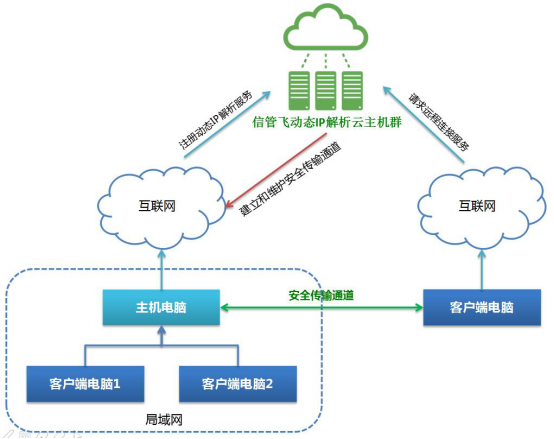 圖1 動態(tài)IP解析服務(wù)技術(shù)示意圖