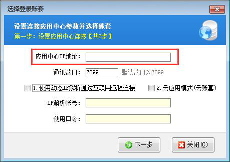 在客戶端程序登錄窗口點擊“選擇賬套”,輸入自購的云主機(jī)IP地址,點擊“下一步”后進(jìn)入選擇賬套界面,選擇需要登錄的帳套即可,如下圖所示: