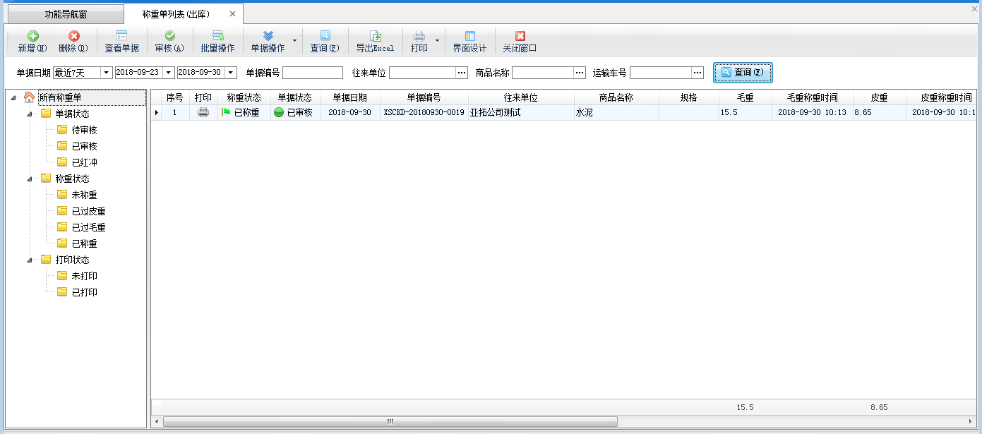 包括功能:地磅稱重參數配置、稱重入庫單、稱重出庫單、稱重單列表等。