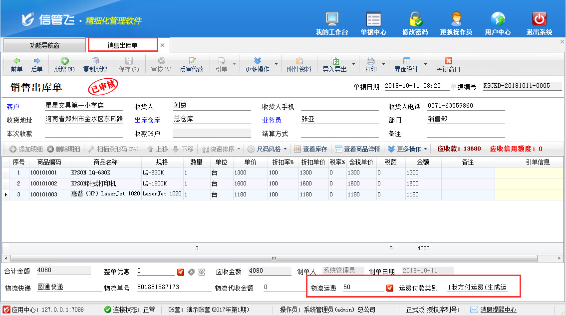 銷(xiāo)售出庫(kù)單中運(yùn)費(fèi)輸入有以下四種類(lèi)型可選擇: