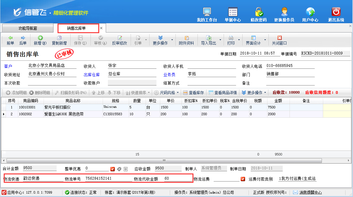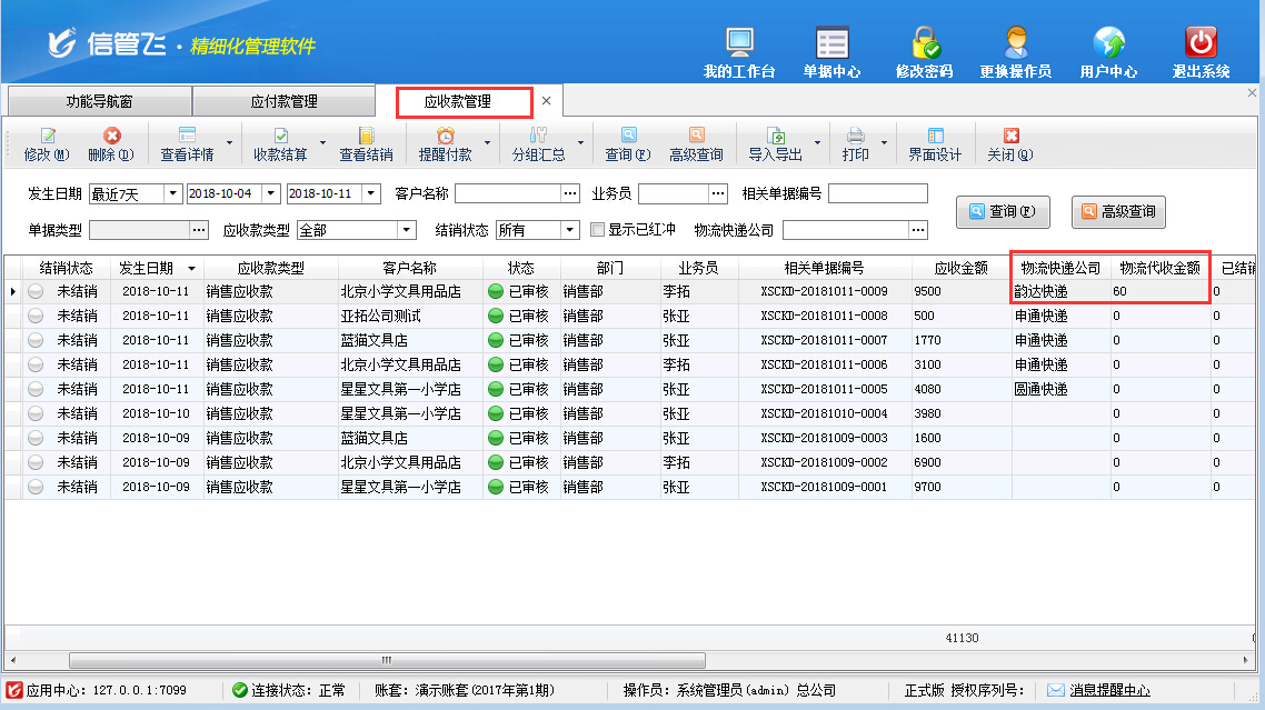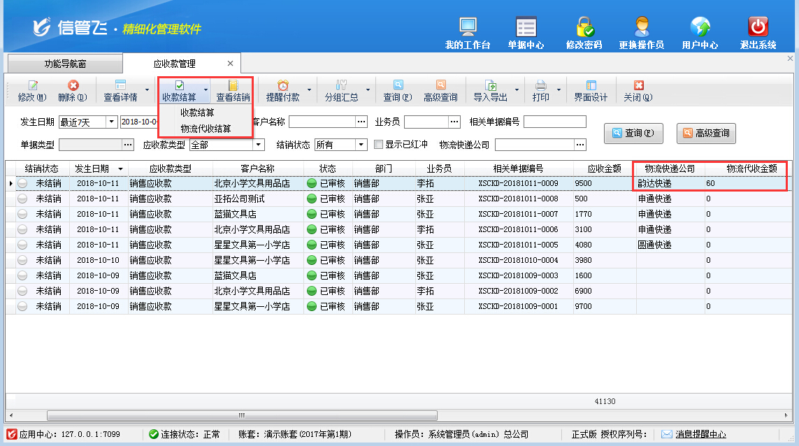 銷(xiāo)售出庫(kù)單存在物流代收情況時(shí),可以在銷(xiāo)售出庫(kù)單中輸入物流代收金額,可以在應(yīng)收款管理中進(jìn)行物流代收結(jié)算。