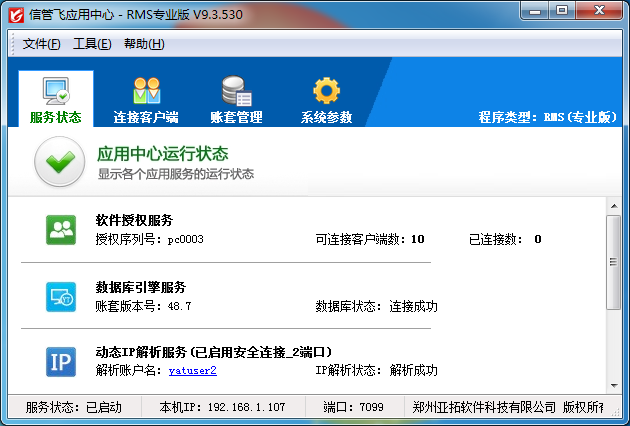 ????雙擊桌面右下角的應用中心程序圖標,即可打開信管飛應用中心主界面: