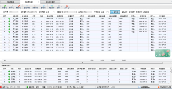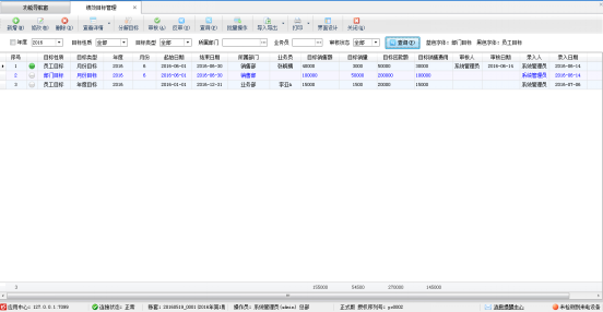 查詢:可以根據年度、目標性質、目標類型、部門、業務員及審核狀態等條件查詢績效目標記錄。