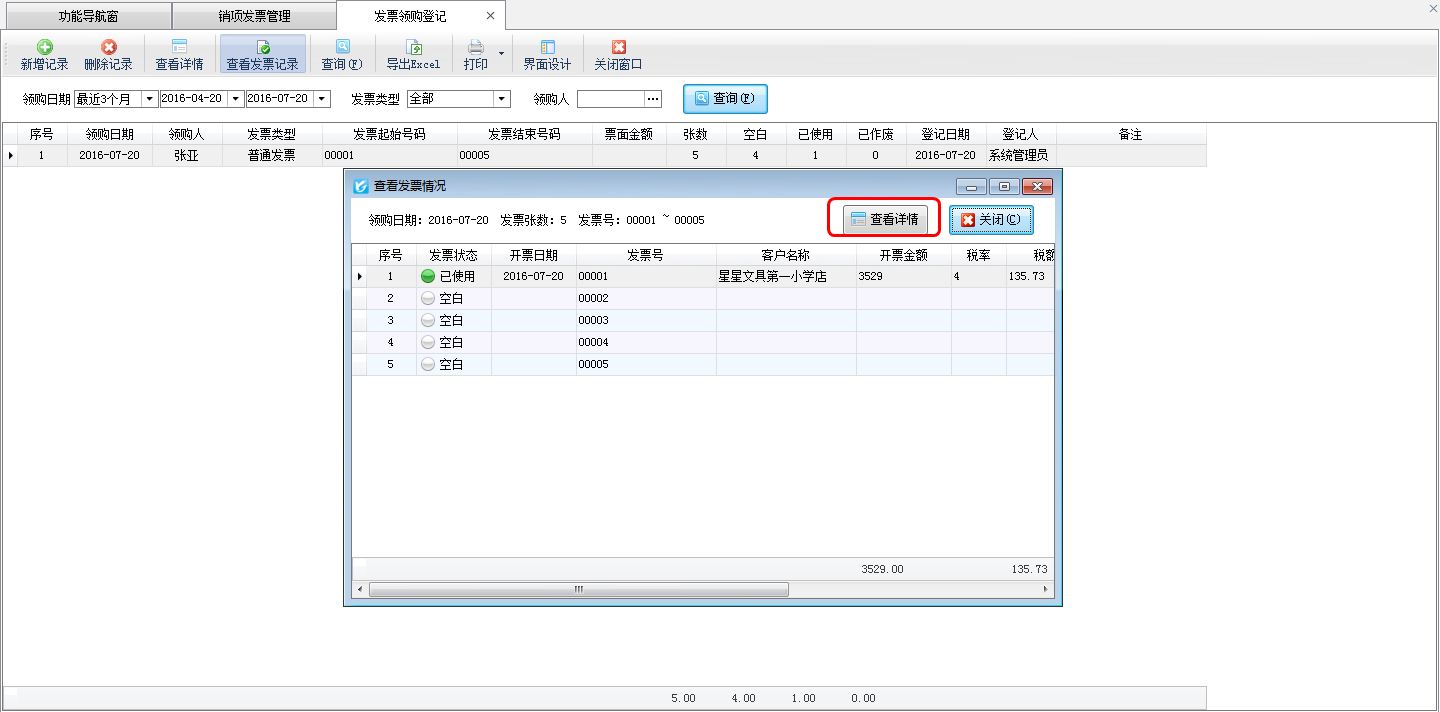 查看詳情:選中一條領購記錄,點擊“查看詳情”按鈕,可以查看該條記錄的領購登記信息。