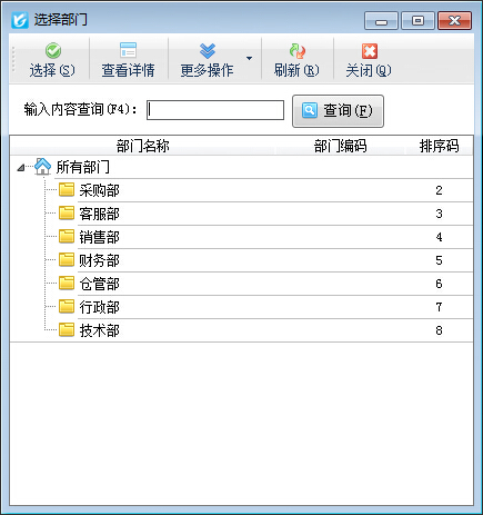 ????選擇部門,然后點擊“選擇”按鈕,或者直接雙擊部門節點即可。