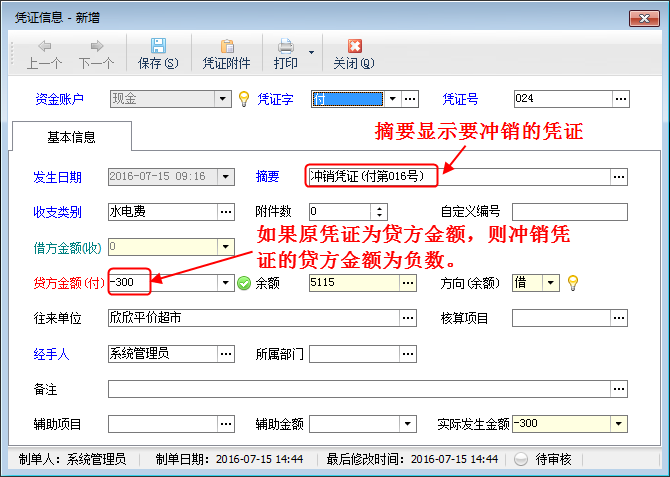 貸方金額:如果憑證字為“付”,則貸方金額必須填寫。貸方為支出,余額減少。