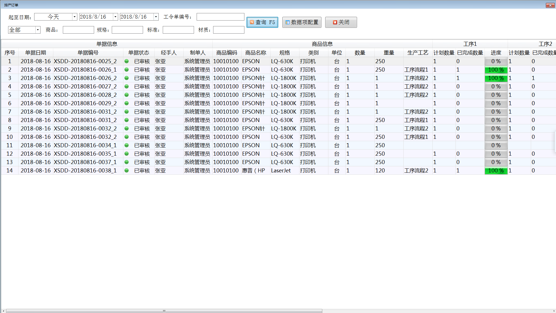 生產任務明細查詢:可根據單據編號、商品、經手人、客戶等條件查詢某個時間段內,生產任務單的產品明細以及執行數量情況。