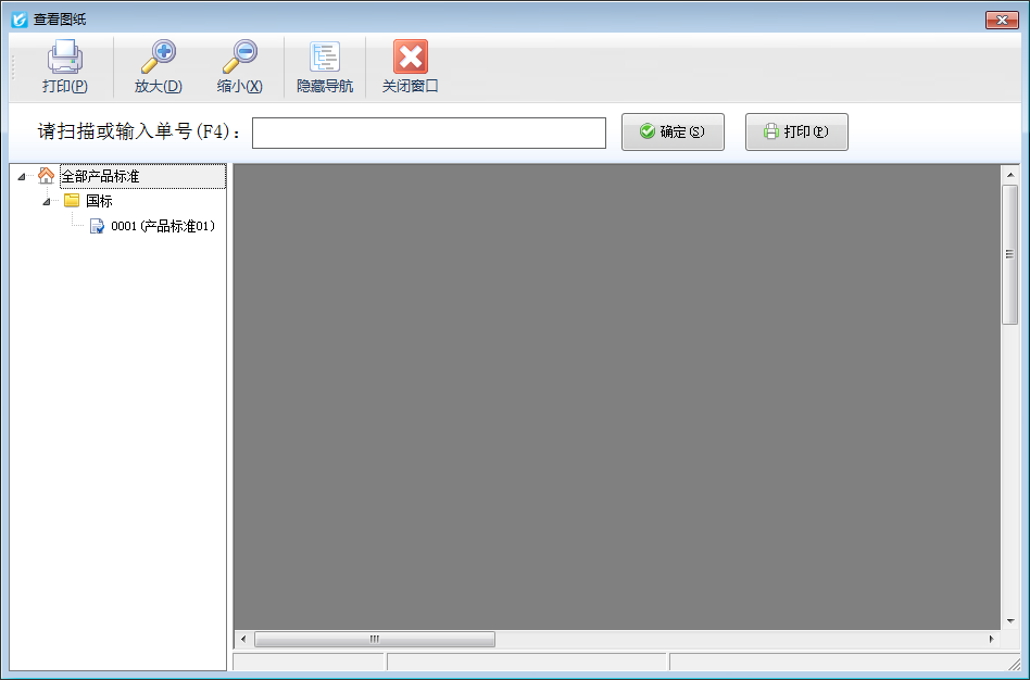 查看圖紙:點擊“查看圖紙”按鈕可以打開查看圖紙窗口,請掃描或者輸入工令單單號確定選擇工令單并查看此工令單生產產品的產品圖紙,支持打印產品圖紙。