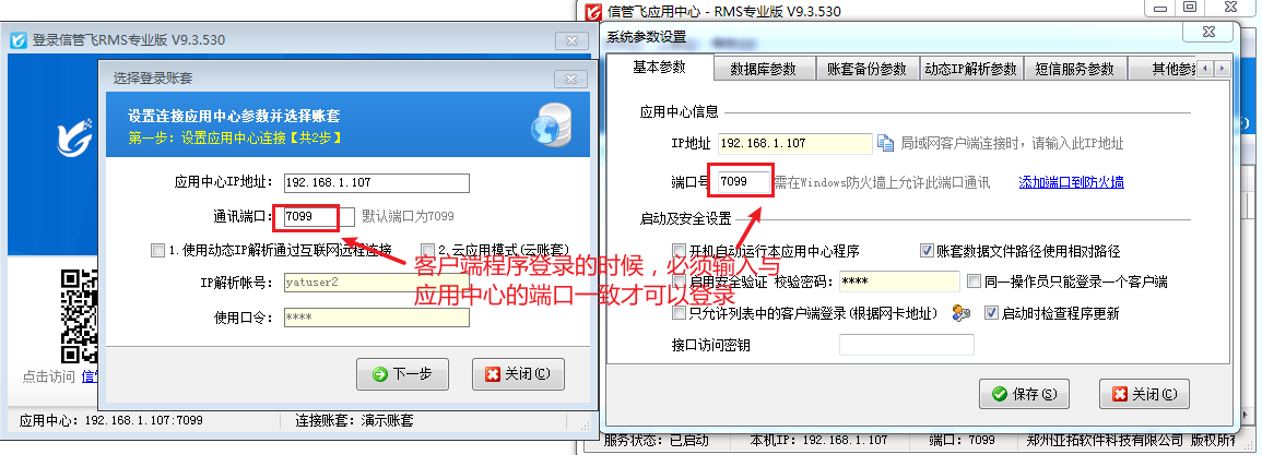 ????由于軟件采用多層架構(gòu),因此其他電腦要訪問主機(jī)時(shí),如果 Windows 防火墻開啟(默認(rèn)都是開啟的),必須在防火墻中設(shè)置允許相應(yīng)的端口通訊。 軟件的默認(rèn)端口一般不要更改,如果調(diào)整為其他端口,則客戶端登錄的時(shí)候要與此端口一致。