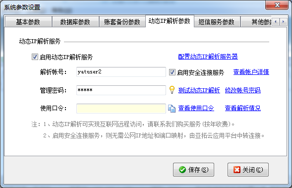 ????解析帳號(hào)的密碼分為管理密碼和使用口令。客戶端程序登錄的時(shí)候只需要知道使用口令即可。管理密碼在系統(tǒng)參數(shù)配置中使用,由系統(tǒng)管理員掌握即可。