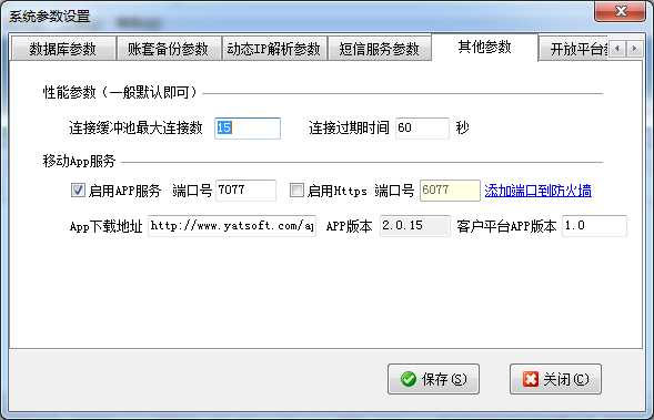 ????可以維護(hù)移動(dòng) App 服務(wù)參數(shù)、Web 服務(wù)參數(shù)以及性能參數(shù),一般默認(rèn)即可,不需要設(shè)置。