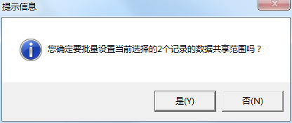 ????批量選擇銷售機會信息后,點擊工具欄的“更多操作”—》“設置共享范圍”按鈕,會提示“您確定要批量設置當前選擇的X個記錄的數據共享范圍嗎?”,點擊“是”進行批量設置共享范圍即可。如下圖所示: