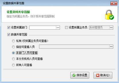 ????共享范圍設置為“私有”,則只有該潛在客戶資料的“所屬業務員”才可以查看,除錄入人和所屬業務員外,其他人無法查看到此潛在客戶信息。如果沒有指定所屬業務員,則只有錄入人可以看到。