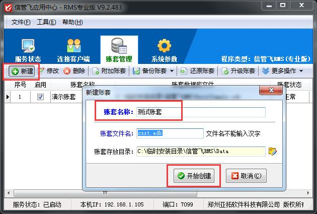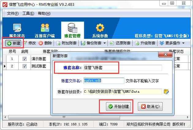 ????賬套即賬套數(shù)據(jù)庫(kù),這是一個(gè)會(huì)計(jì)業(yè)務(wù)引申出來(lái)的概念,賬套數(shù)據(jù)庫(kù)中存儲(chǔ)業(yè)務(wù)數(shù)據(jù)。使用軟件之前建議新增加一個(gè)賬套,用于重新錄入和管理數(shù)據(jù),信管飛RMS(星光版、標(biāo)準(zhǔn)版、專業(yè)版)、信管飛倉(cāng)庫(kù)管理軟件、信管飛出納記賬軟件、信管飛送貨單軟件、信管飛票據(jù)打印軟件等軟件的賬套都是在主機(jī)電腦的應(yīng)用中心程序上集中管理的,下面我們以信管飛RMS專業(yè)版為例詳細(xì)介紹下在使用軟件之前如何新增加一個(gè)賬套?