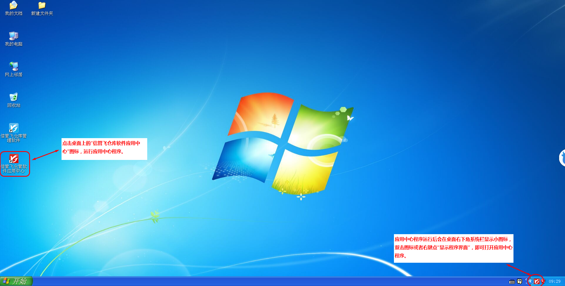 ????運(yùn)行信管飛倉(cāng)庫(kù)管理軟件應(yīng)用中心并打開(kāi)信管飛倉(cāng)庫(kù)管理軟件應(yīng)用中心程序界面,主機(jī)電腦上軟件安裝后會(huì)在桌面上自動(dòng)創(chuàng)建“信管飛倉(cāng)庫(kù)管理軟件應(yīng)用中心(紅色圖標(biāo))”及“信管飛倉(cāng)庫(kù)管理軟件即客戶端(藍(lán)色圖標(biāo))”的快捷方式,點(diǎn)擊“信管飛倉(cāng)庫(kù)管理軟件應(yīng)用中心(紅色圖標(biāo))”即可運(yùn)行信管飛倉(cāng)庫(kù)管理軟件應(yīng)用中心,如下圖所示。