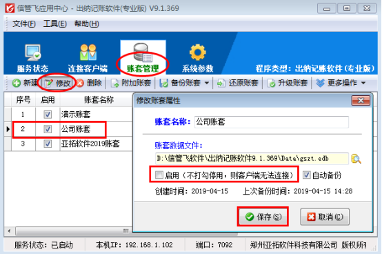 # 6.17.13 出納記賬軟件如何停用賬套?