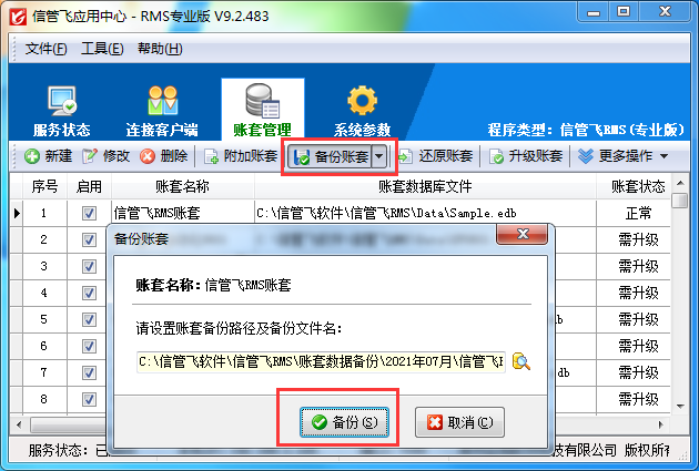????一、在信管飛RMS應(yīng)用中心中如何對(duì)賬套進(jìn)行備份?