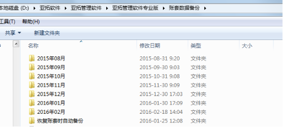 ????②賬套備份文件會(huì)按照年月分目錄存儲(chǔ),由于備份為完整備份,因此早前的備份可以直接刪除。我們建議保留本月和每年一月的賬套備份文件。
