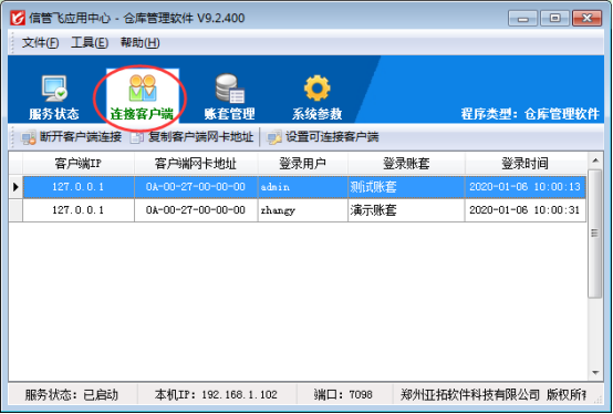 ????亞拓軟件旗下的信管飛RMS、信管飛倉(cāng)庫(kù)管理軟件、信管飛出納記賬軟件、信管飛送貨單軟件等軟件目前升級(jí)為新架構(gòu)程序,安裝后會(huì)顯示兩個(gè)圖標(biāo),一個(gè)為應(yīng)用中心程序,一個(gè)是客戶端程序。軟件安裝完成后使用需要先打開(kāi)應(yīng)用中心程序(紅色圖標(biāo)),然后再打開(kāi)客戶端程序(藍(lán)色圖標(biāo))。
