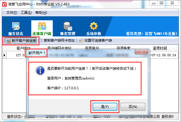 ????客戶端程序與應(yīng)用中心程序斷開(kāi)時(shí),軟件界面最下方的“連接狀態(tài)”會(huì)顯示“已斷開(kāi)”,如圖所示。