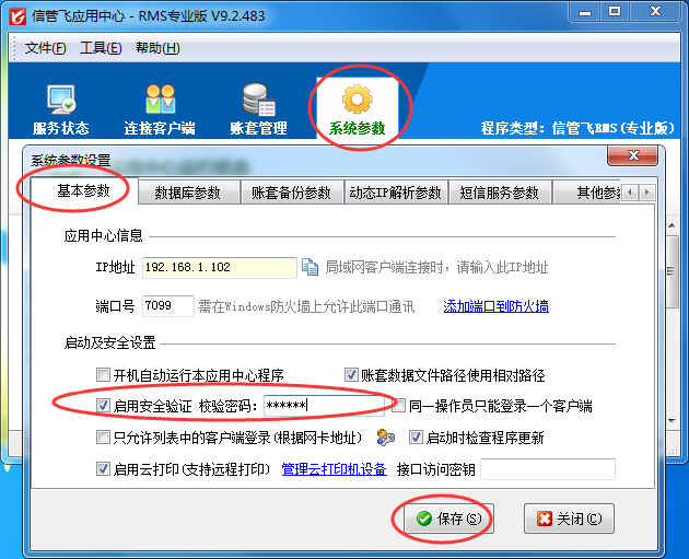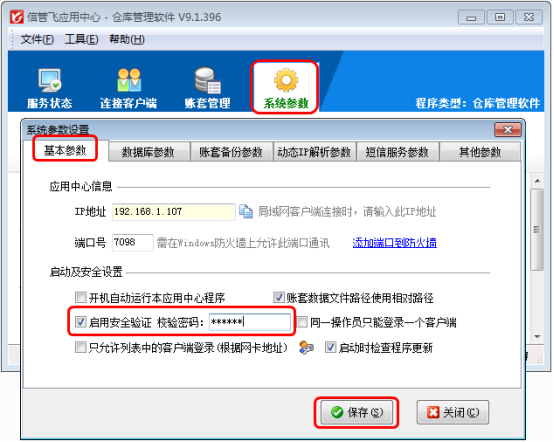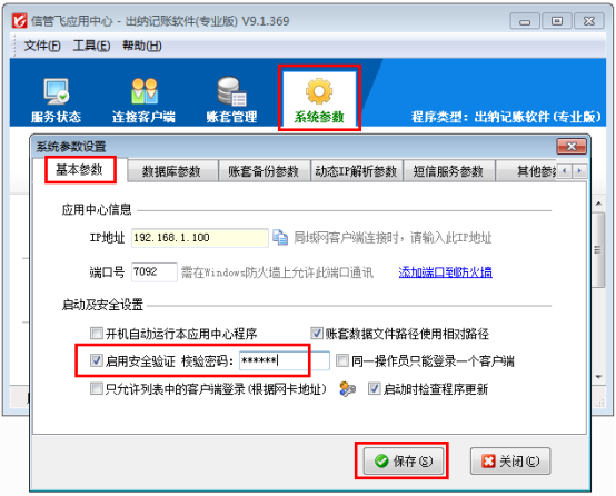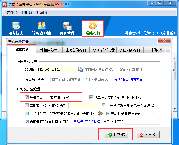 ????應(yīng)用中心打開(kāi)后會(huì)在電腦的右下角顯示,打開(kāi)紅色圖標(biāo)的應(yīng)用中心,點(diǎn)擊“系統(tǒng)參數(shù)”會(huì)彈出各參數(shù)的設(shè)置界面,選擇“基本參數(shù)”在啟動(dòng)與安全設(shè)置下勾選上“開(kāi)機(jī)自動(dòng)運(yùn)行本應(yīng)用中心程序”保存,則下次開(kāi)機(jī)后會(huì)自動(dòng)運(yùn)行應(yīng)用中心,操作如下圖所示: