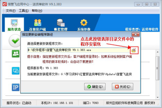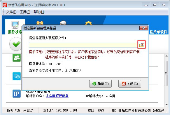 ????本文以“信管飛送貨單軟件”為例,示范下如何設(shè)置主機(jī)應(yīng)用中心程序指定更新安裝程序和客戶端如何下載安裝。