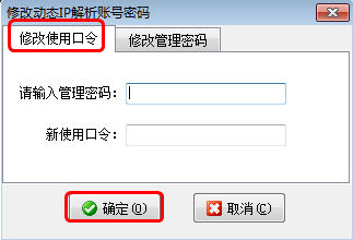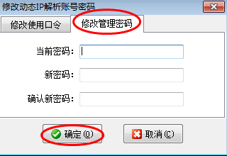 ????在修改密碼窗口,點(diǎn)擊“修改管理密碼”頁(yè)面,輸入當(dāng)前密碼、新密碼、確認(rèn)新密碼后,點(diǎn)擊“確定”按鈕,就可以修改動(dòng)態(tài)IP解析服務(wù)的管理密碼。如下圖所示:
