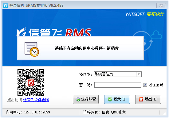 ????以信管飛RMS為例示范下,直接打開(kāi)客戶端程序,會(huì)提示“系統(tǒng)正在啟用應(yīng)用中心程序,請(qǐng)稍后...”如下圖所示: