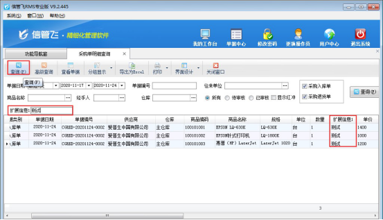 ????信管飛RMS軟件、信管飛倉庫管理軟件、信管飛送貨單軟件等支持在采購單、銷售單匯總表(送貨單匯總對賬單)、采購單、銷售單明細(xì)查詢(送貨明細(xì)對賬單)、采購訂單、銷售訂單明細(xì)表(訂單明細(xì)查詢)中設(shè)置擴(kuò)展信息為查詢條件,可匯總單據(jù)明細(xì)或者單據(jù)主體項(xiàng)中擴(kuò)展信息內(nèi)容。