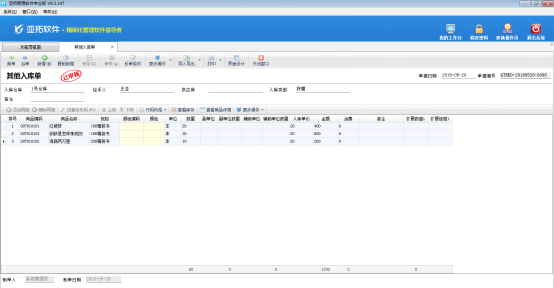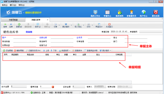 ????信管飛倉庫管理軟件業(yè)務(wù)單據(jù)的界面分為單據(jù)主體及單據(jù)明細(xì)兩部分,如圖1所示,單據(jù)默認(rèn)值功能是對單據(jù)主體的部分?jǐn)?shù)據(jù)項(xiàng)進(jìn)行設(shè)置默認(rèn)值,業(yè)務(wù)單據(jù)設(shè)置默認(rèn)值后,每次新增單據(jù)時(shí)會顯示已設(shè)置的數(shù)據(jù)項(xiàng)默認(rèn)值。