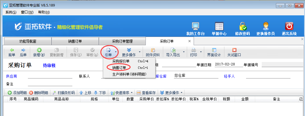 ????采購訂單引用銷售訂單明細(xì)功能是V8.5.189版本增加的功能,更新最新版本即可使用相應(yīng)功能。
