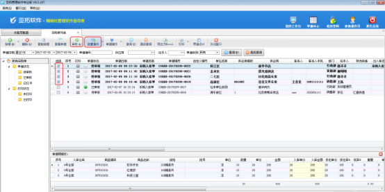 ????批量審核采購單/銷售單功能是V8.5.187版本增加的功能,可升級到最新版本即可使用此功能。