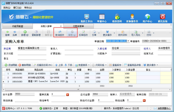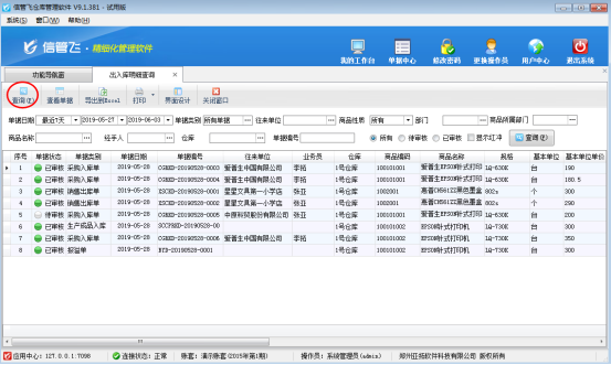 ????信管飛RMS(進(jìn)銷存管理軟件)、信管飛倉庫管理軟件中業(yè)務(wù)單據(jù)已審核后默認(rèn)是不允許刪除的,如下圖所示,刪除按鈕為灰色的,不可操作,那么如果單據(jù)審核后發(fā)現(xiàn)此單做錯了,需要刪除,如何操作呢?本篇文章詳細(xì)介紹一下倉庫管理軟件內(nèi)如何刪除已審核的業(yè)務(wù)單據(jù)?