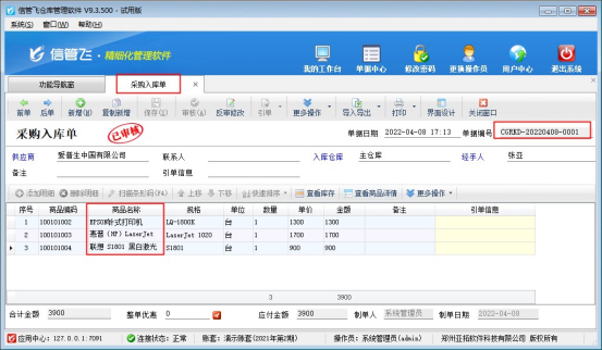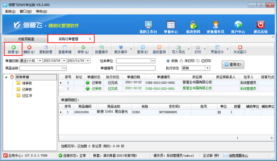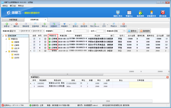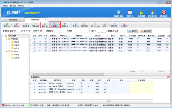 ????信管飛倉庫管理軟件、信管飛RMS軟件新增采購單都可以直接保存并審核單據(jù),軟件還支持批量審核采購單。如果您每天錄單量較多,為了節(jié)省時(shí)間提高工作效率,可以使用批量審核功能,下邊我們在信管飛倉庫管理軟件的采購單列表中示范下如何使用批量審核功能。