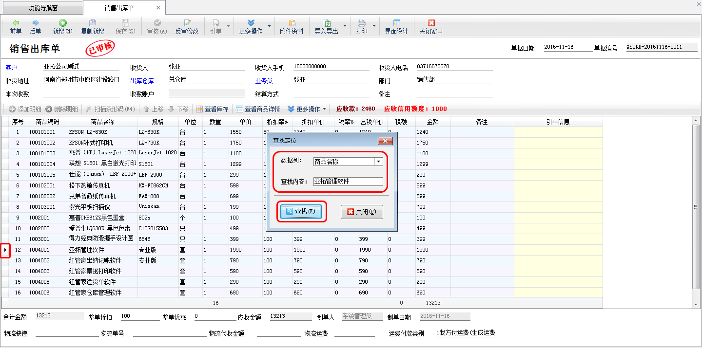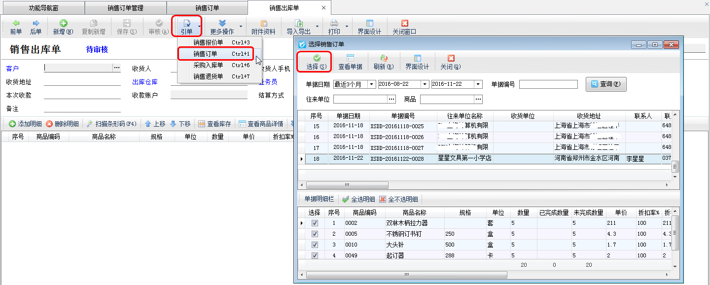 ????銷售訂單新增完成后,然后在功能導(dǎo)航窗點(diǎn)擊“銷售管理”——》“銷售出庫單”打開銷售出庫單界面新增銷售出庫單,在工具欄點(diǎn)擊“引單”—》“銷售訂單”可打開“選擇銷售訂單”窗口,在此窗口選擇需要發(fā)貨的銷售訂單,編輯發(fā)貨明細(xì)信息,然后保存審核出庫即可。