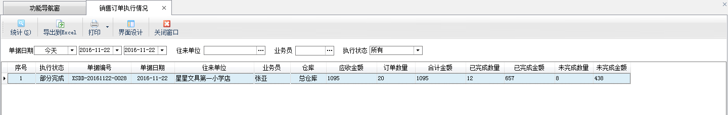 ????銷售訂單執(zhí)行情況:可以統(tǒng)計(jì)出每個銷售訂單執(zhí)行情況,包括合計(jì)金額、已完成金額、未完成金額以及中止金額等信息。