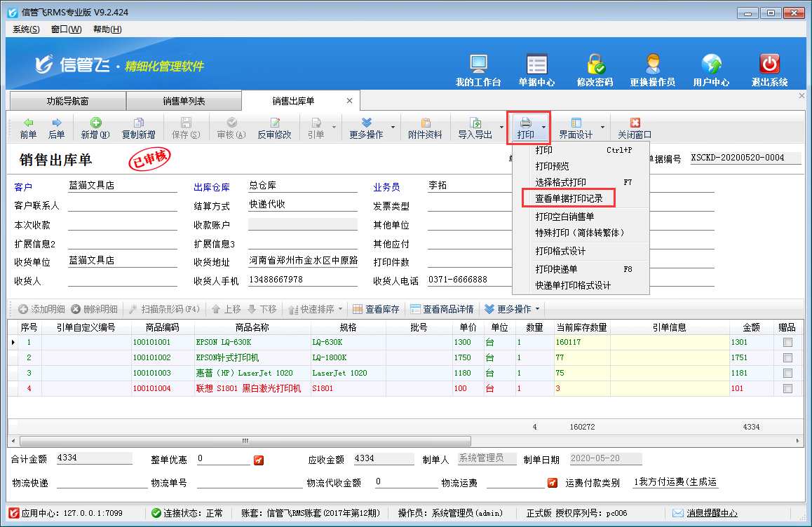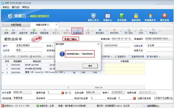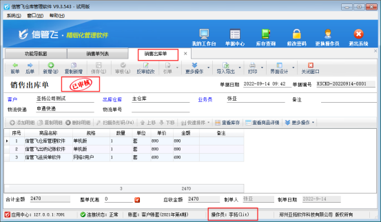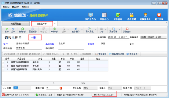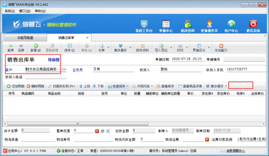????信管飛倉庫管理軟件、信管飛RMS軟件等支持新增多個操作員并可設(shè)置操作員權(quán)限,有用戶需要開銷售單需要多人審核,軟件支持設(shè)置多級審核,本文以“信管飛倉庫管理軟件”為例示范下單據(jù)多級審核功能如何使用?