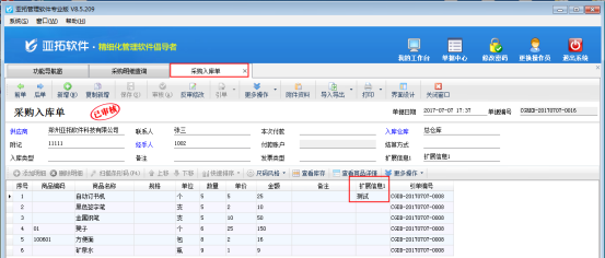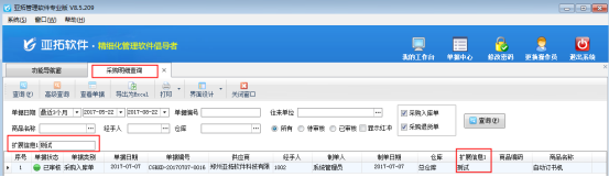????采購單明細(xì)查詢中的擴(kuò)展信息項(xiàng)是調(diào)用采購單界面的單據(jù)明細(xì)中的擴(kuò)展信息。如需要查詢單據(jù)主體中調(diào)用的擴(kuò)展信息項(xiàng),請?jiān)凇安少弳螀R總表”中設(shè)置查詢。