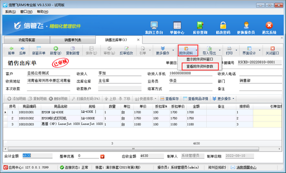 ????信管飛RMS軟件是進(jìn)銷存一體化的軟件,支持開單上傳附件資料管理單據(jù)附件,本篇文章以信管飛RMS專業(yè)版為例介紹一下如何設(shè)置打開銷售出庫單可直接查看附件資料窗口?