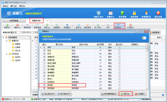 ????以銷售單列表為例,配置下如何查看銷售單附件數(shù),在銷售單列表工具欄點(diǎn)擊“界面設(shè)計(jì)”打開界面設(shè)計(jì)窗口,找到“附件數(shù)”數(shù)據(jù)項(xiàng),并勾選顯示出來,如下圖所示。