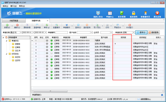 ????設(shè)置完成后,在銷售單列表即可查看銷售單附件數(shù)量,如下圖所示,附件數(shù)為空,說明此單不存在附件。