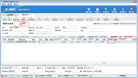 ????反結(jié)賬操作完成,返回銷售開單界面重新保存補(bǔ)錄8月份的單據(jù),可以正常保存審核。如下圖所示: