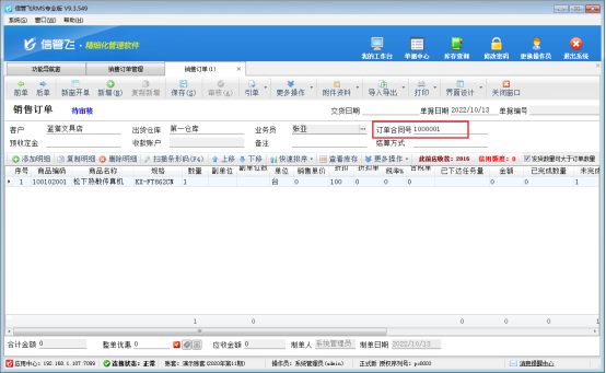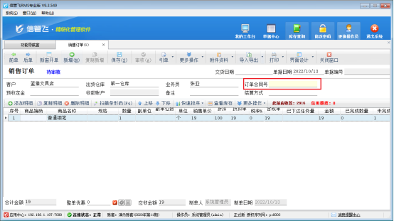 ????參數(shù)保存完成后,返回銷售訂單管理界面,新增銷售訂單,自定義編號可以直接輸入。