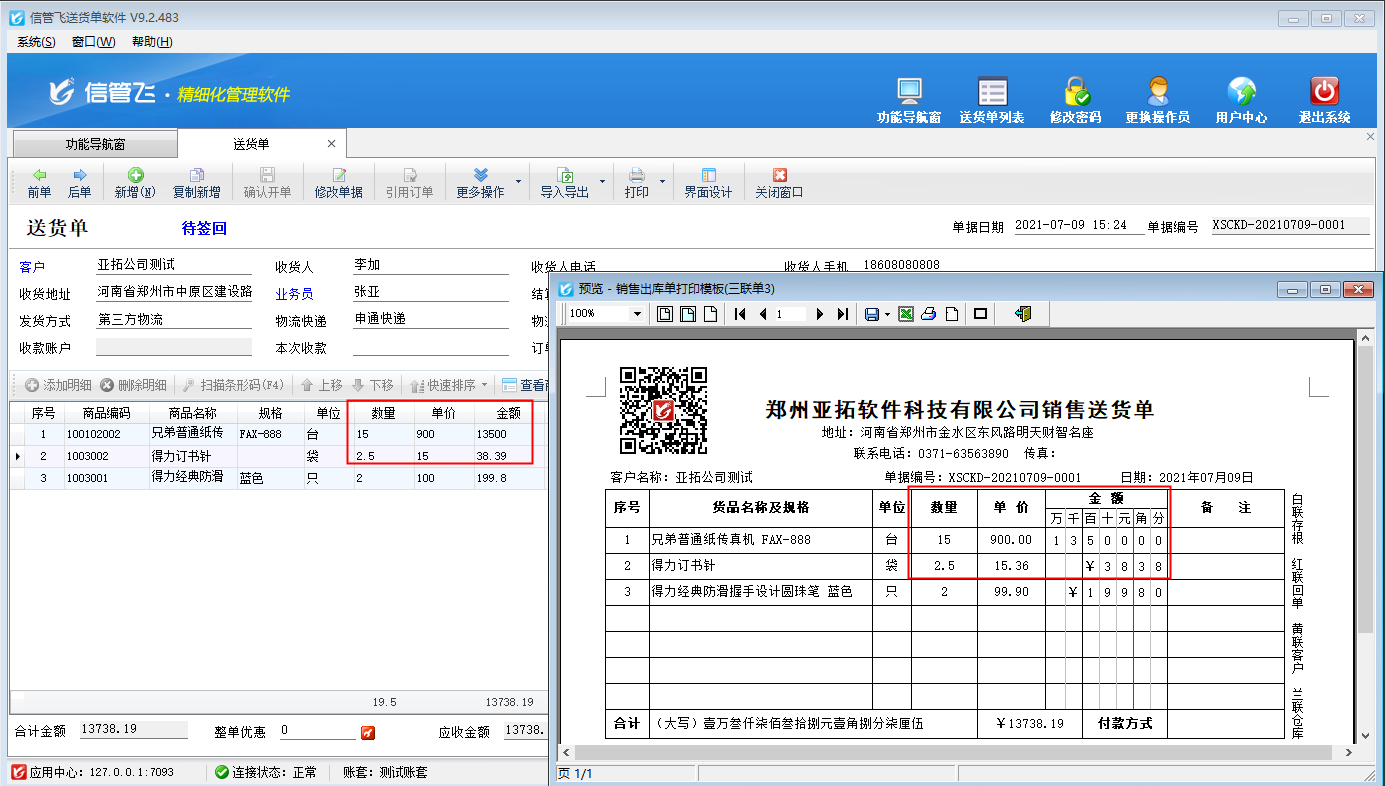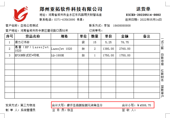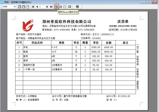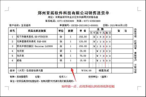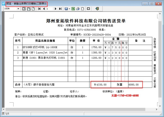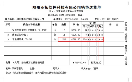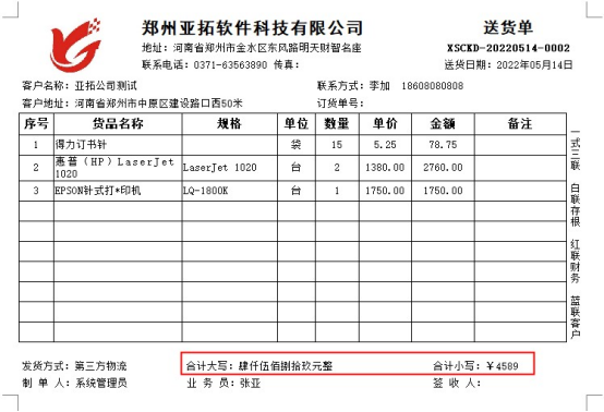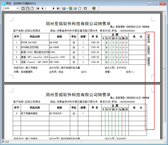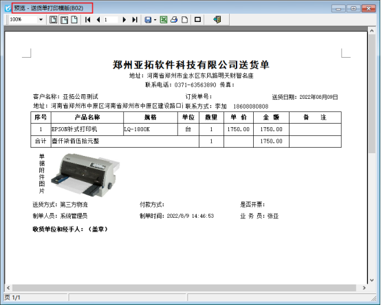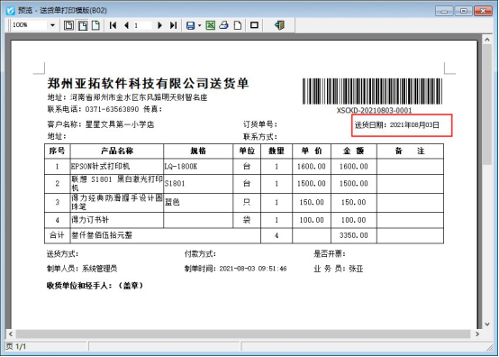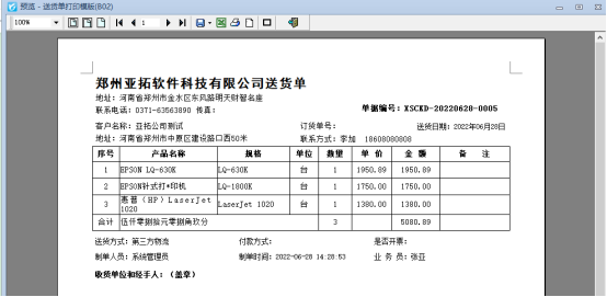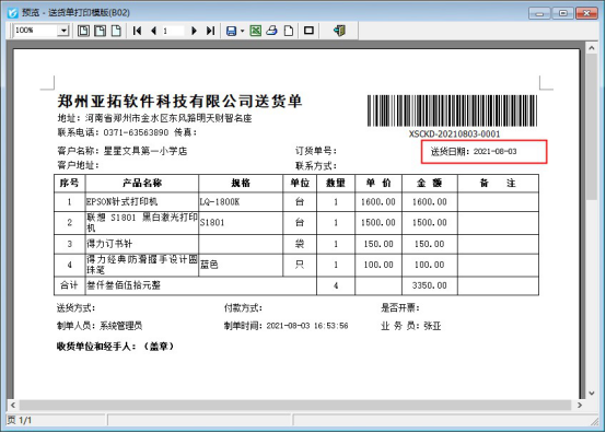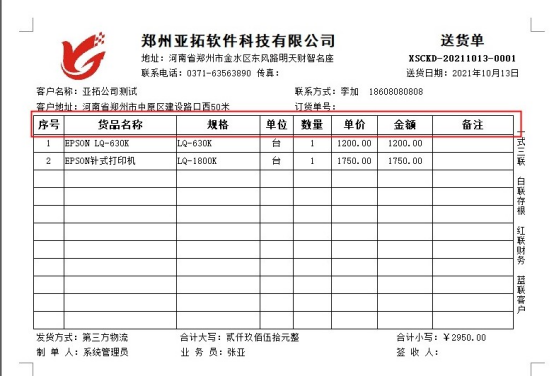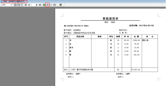 ????設(shè)置好之后,重新打印送貨單,即可正常打印,如下圖所示。