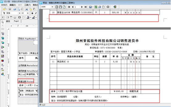 ????信管飛送貨單軟件、信管飛RMS軟件等都支持打印單據(jù),軟件內(nèi)置了十幾種打印模板以供使用。默認(rèn)打印模板的金額是按財務(wù)樣式進(jìn)行顯示的,默認(rèn)金額格式是按7位顯示,只顯示到萬,如果出現(xiàn)金額超過萬位會顯示不出來(如下圖所示),本文以“信管飛送貨單軟件”為例,示范下如何修改金額樣式的顯示數(shù)字個數(shù)。