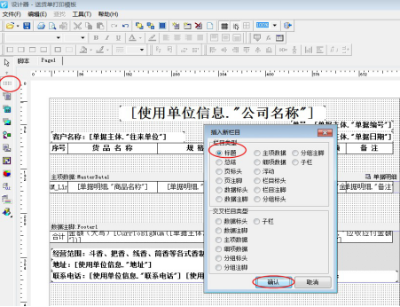 ????2.自定義打印模板,直接在打印模板中輸入的單位名稱。如下圖所示: