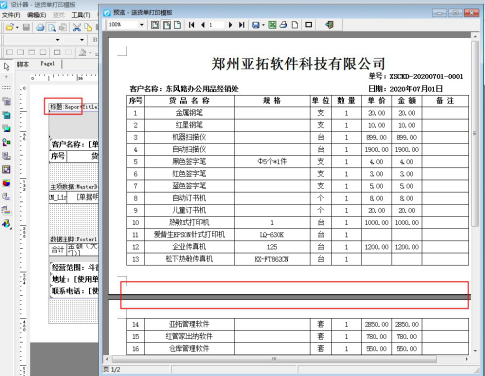????浮動邊條添加到多聯(lián)備注內(nèi)容后,點擊打印預(yù)覽可以看到打印多頁時,每頁都顯示出了備注內(nèi)容,如下圖所示: