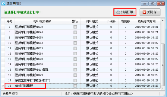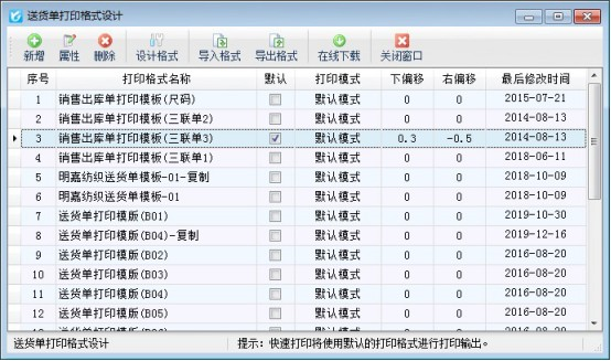 ????信管飛送貨單軟件、信管飛RMS軟件、信管飛倉庫管理軟件等,在開單界面都內(nèi)置了好幾種打印格式,除此之外,軟件也支持自定義設(shè)計打印模板格式,為了開單打印單據(jù)方便,軟件可以把常用的模板設(shè)置為默認(rèn)模板,開單保存后直接進(jìn)行打印操作。不需要再次選擇模板進(jìn)行打印。