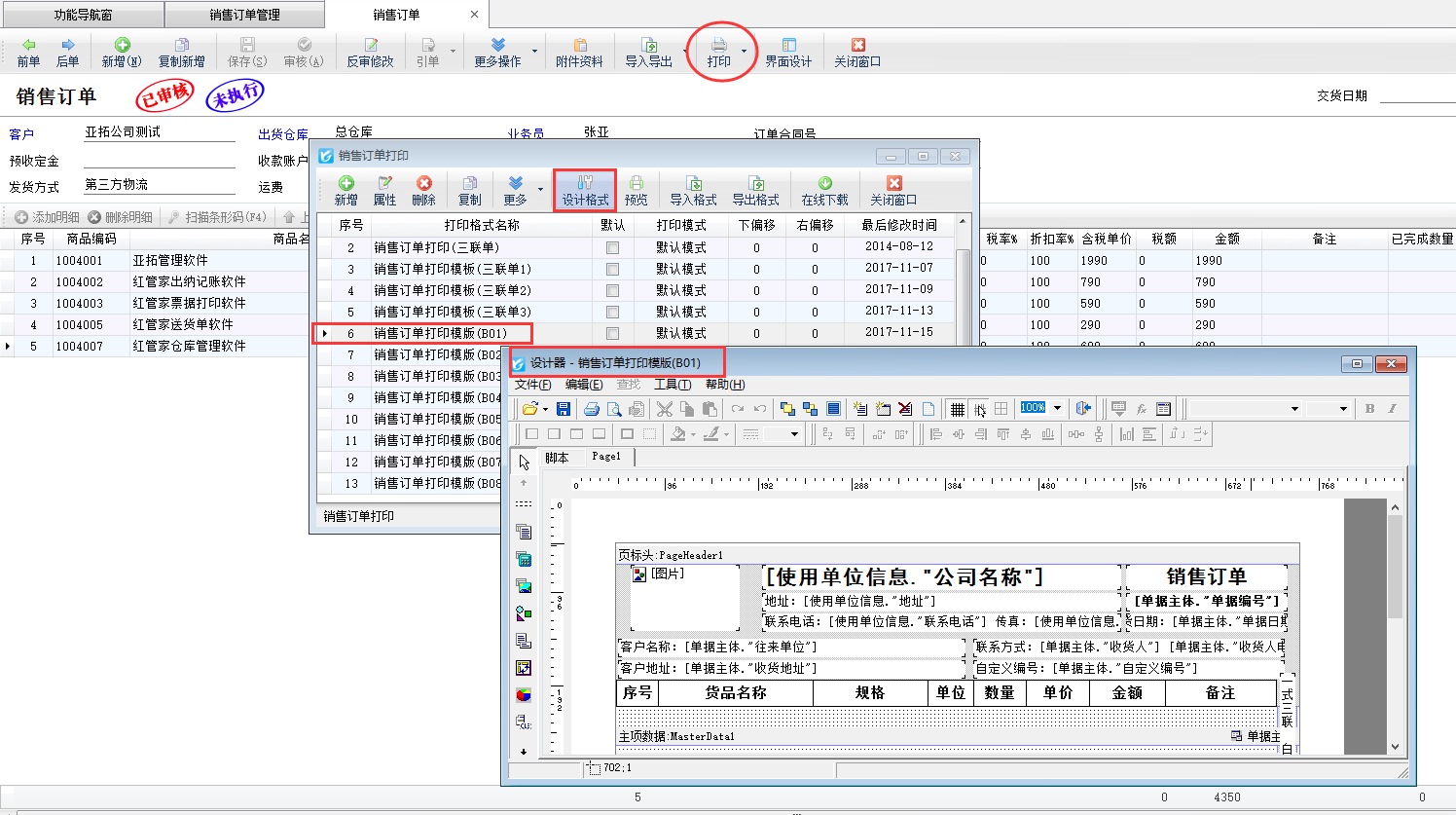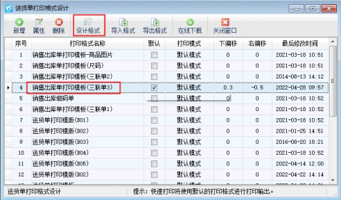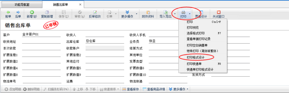 ????在開單界面點擊“打印”—》“打印格式設(shè)計”—》選擇打印模板點擊“設(shè)計格式”進(jìn)入設(shè)計格式界面,有以下兩種情況: