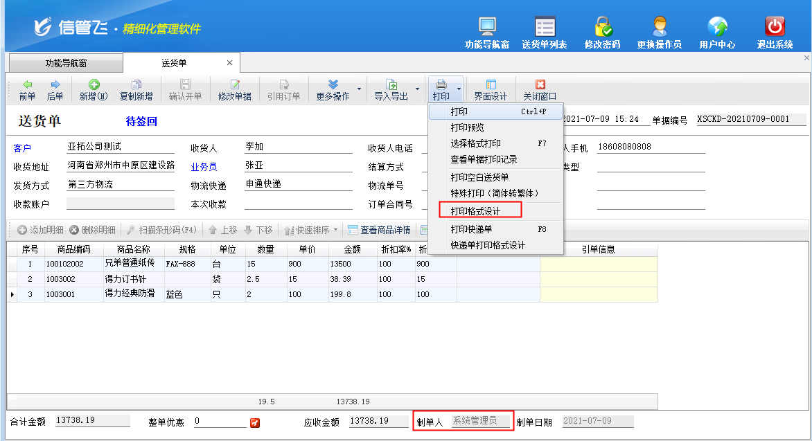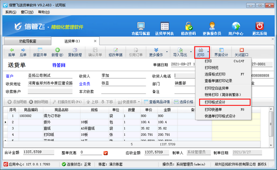 ????歡迎下載試用可自定義設(shè)計打印模板的軟件:信管飛送貨單軟件